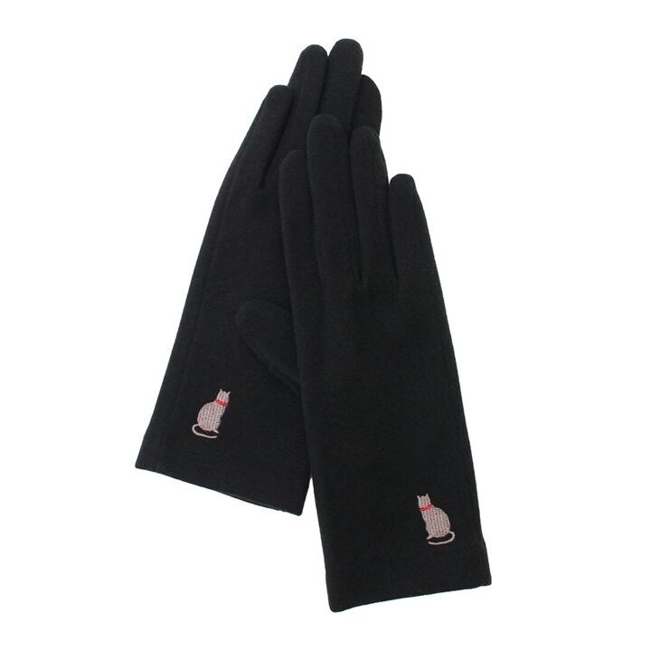 寒い季節にぴったりのアイテム☆ ワンポイントねこ刺繍グローブ【スマホ対応手袋】|手袋 ブラック・ブルー・ベージュ・ブラウン